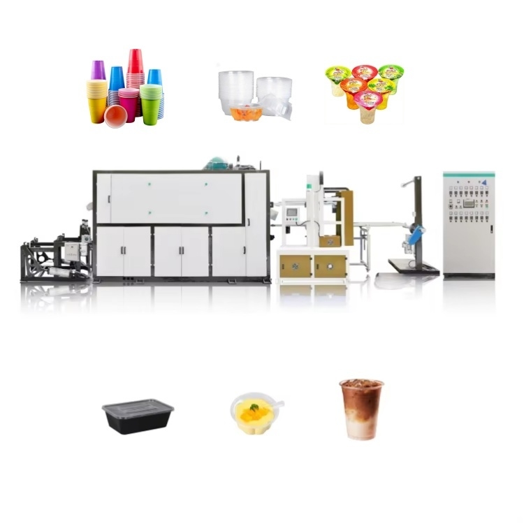 カップ成形機は、主に以下を含む様々なプラスチック容器製品を製造できますが、これらに限定されません。1. プラスチックカップ:使い捨てプラスチックカップを含み、冷たい飲み物、ファーストフード、温かい飲み物などに適しています。2. ゼリーカップ:ゼリーやその他のデザートを包装するためのプラスチック容器包装容器:食品、飲料など、様々な製品用のプラスチック包装容器。3. 飲料カップ:様々な飲料を入れるのに特に適したプラスチックカップ環境に優しいカップと包装:環境保護を求める企業向けに、カップ成形機はPLA(ポリ乳酸)などの生分解性プラスチック材料を使用して環境に配慮した製品を製造することもできます。